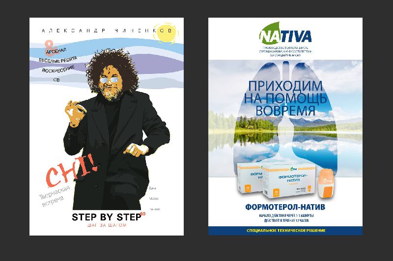 Небольшая коллекция рекламных работ, включающая в себя журнальную рекламу, рекламные листовки и лифлеты, календари, уличные баннеры, плакаты и т.д.